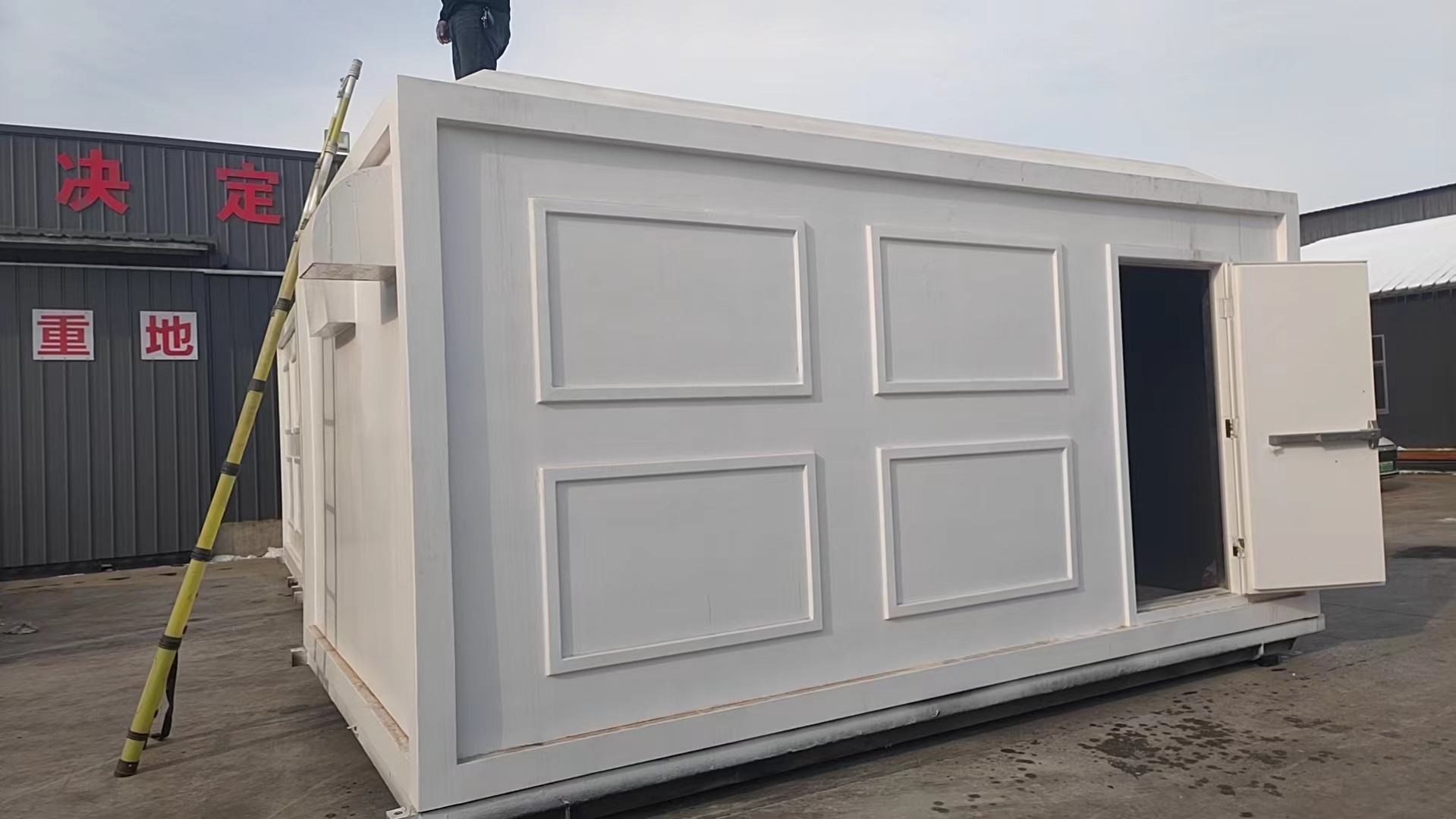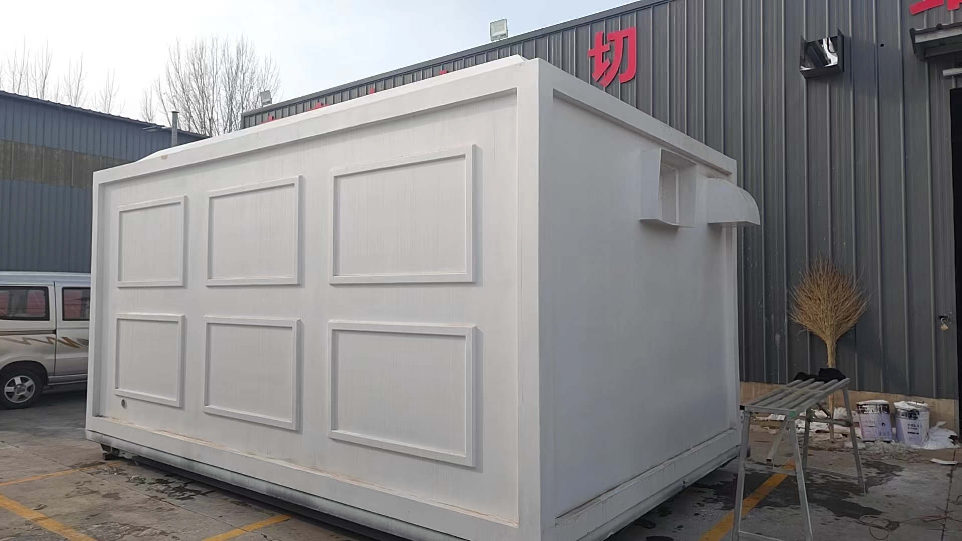 新型方舱,舱底尺寸大小为:5070mm*3070mm,方舱自重为≥2800公斤≤3500公斤,舱底采用100mm*100mm*5mm 100mm*50mm*5mm热镀锌钢管及钢板采用二氧化碳保护焊接的方法焊接而成,再用5mm厚玻璃钢铺设在底部增加了底部的结构强度.舱门采用玻璃钢、钢龙骨、保温板一次性压制而成,并安装舱门专用多层密闭式密封胶条,舱门所用五金件均采用304材质不锈钢安装,杜绝了普通舱门不防潮、不防腐、不防尘、不防水、易变形等问题。舱体内部四壁及舱底、舱顶均采用50mm阻燃挤塑式聚苯乙烯隔热保温板增加保温,并用1.2mm细木工板加固处理,舱底用可拆卸式防静电地板铺设,用于设备防静电处理,舱体粘接铝塑板,舱顶采用1mm厚专用铝扣板,做到方舱内部整体整洁、明亮、干净、大方、易清理、防静电。舱体内部四壁及舱底、舱顶均采用50mm阻燃挤塑式聚苯乙烯隔热保温板增加保温,并用1.2mm细木工板加固处理,舱底用可拆卸式防静电地板铺设,用于设备防静电处理,舱体粘接铝塑板,舱顶采用1mm厚专用铝扣板,做到方舱内部整体整洁、明亮、干净、大方、易清理、防静电。
